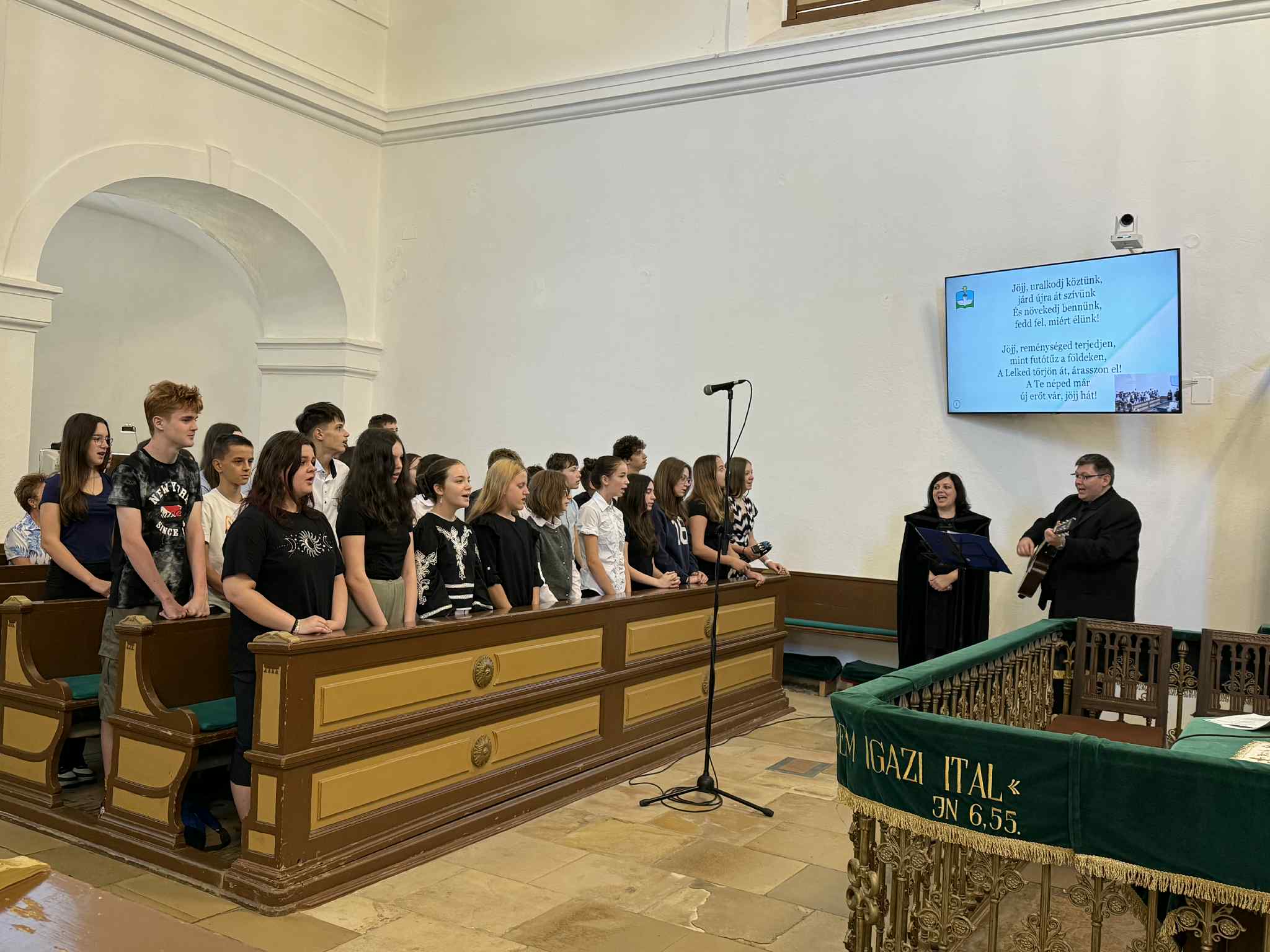 A kezdő éneket fiataljaink vezették, gitár és ritmushangszerek kíséretével. Lelkes éneklésükhöz az egész gyülekezet csatlakozott, így együtt dicsőítettük Istent.