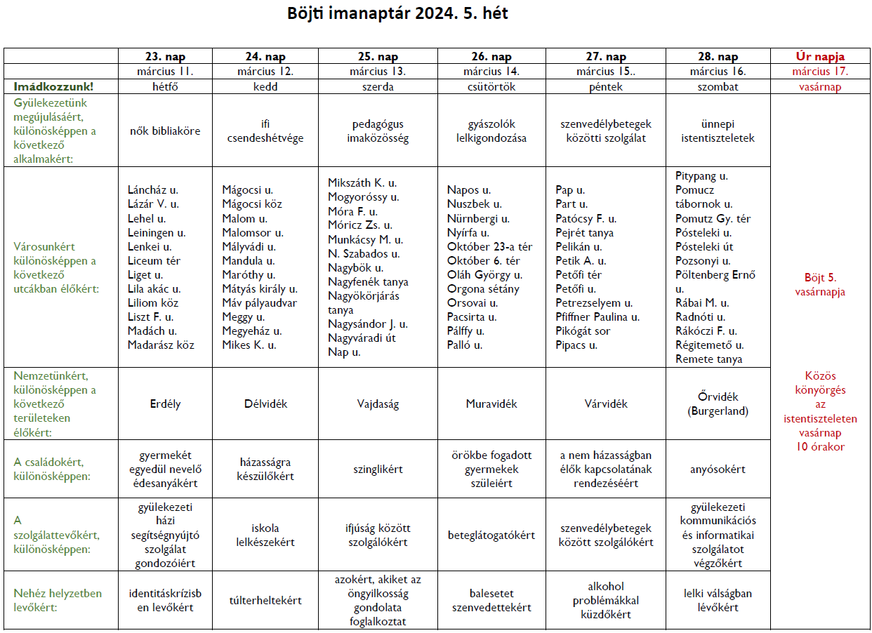Böjti imanaptár 2024. 5. hét