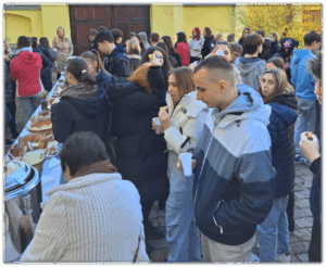 A feltöltő áhítat után jóleső szünet és szeretetvendégség következett: forró tea és friss kalács várta a középiskolás keresztyén hittanosokat. A beszélgetések és nevetések arról árulkodtak, hogy a diákok számára a közösség melege legalább olyan fontos volt, mint a program lelki része.