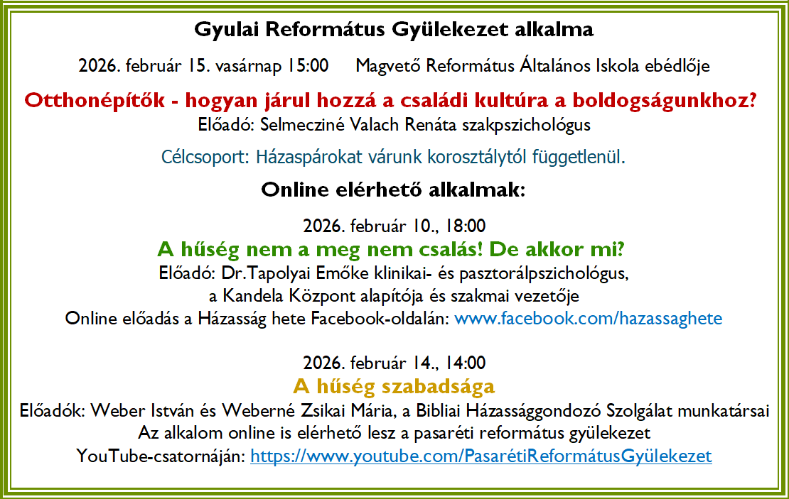 „A házasság Isten csodálatos ajándéka és gondoskodása az ember számára, amelyben a felek megtapasztalhatják a feltétel nélküli szeretet, a hűség és az őszinte megbocsátás értékét egy nekik rendelt, de nem tökéletes társon keresztül.